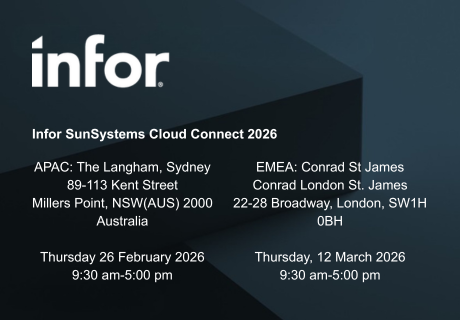 1/7/2026 12:00:00 AMProfessional Advantage are delighted to have been invited to present at Infor SunSystems Cloud Connect customer events in Sydney and London this year. These are exclusive Infor SunSystems events for finance leaders preparing for the next era of financial management. We encourage you to register for these events and find out about what is coming soon.