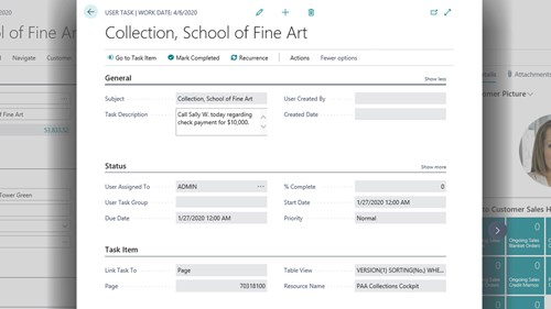 Creating Collections Tasks allows you to set reminders or follow-up action items for specific customers and their invoices. Set your task items up in advance by entering a contact date, contact time and action item for follow-up.